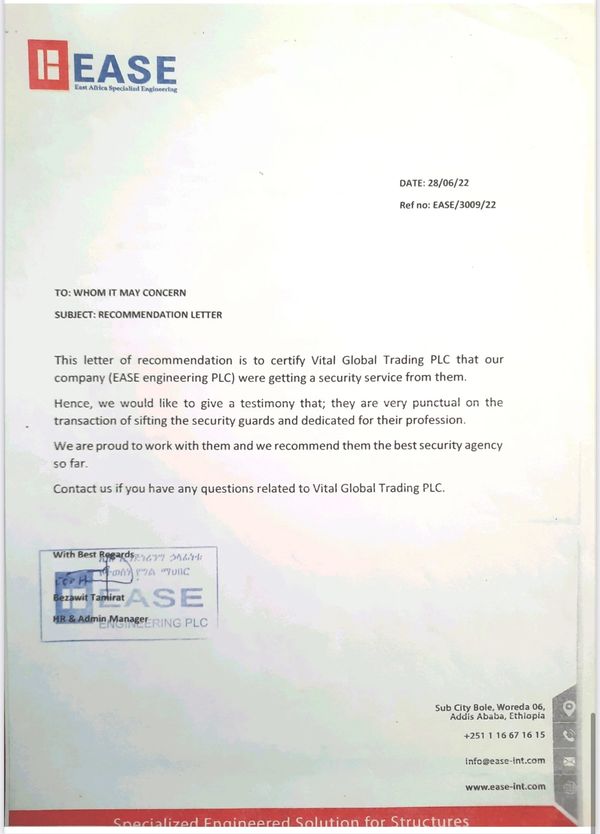 At Vital Security, our vision is to become the most trusted and reliable security provider in ethiopia We believe that every business deserves to feel secure and protected from any